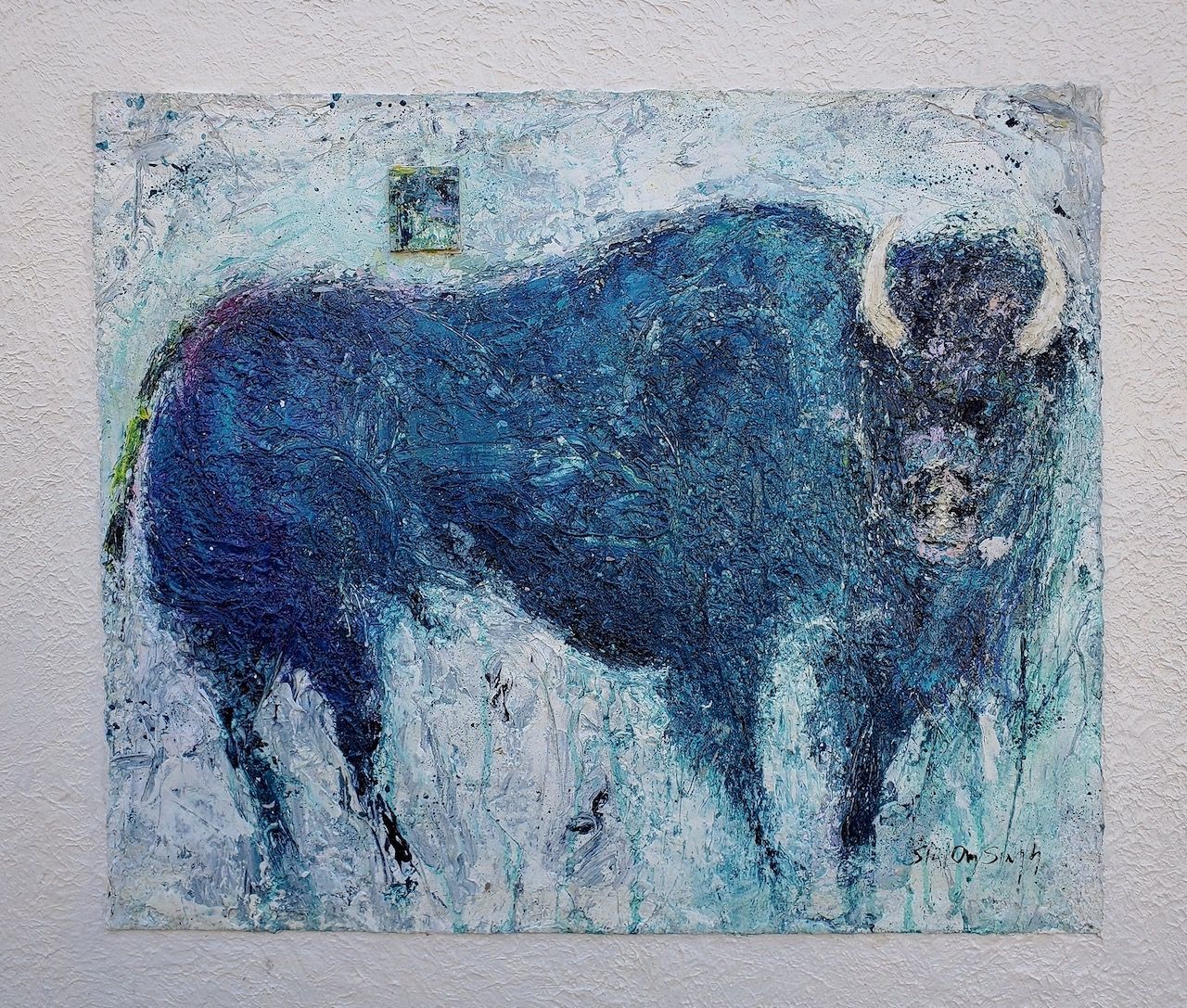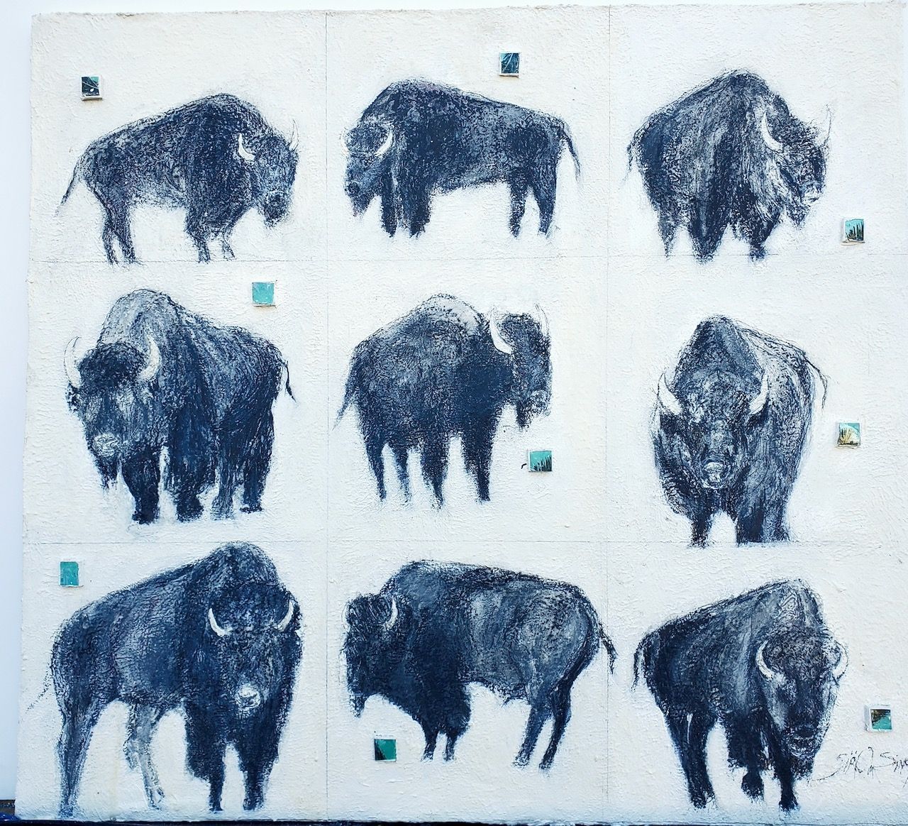 Preservation of water II 6x6 acrylic and metal collage on canvas