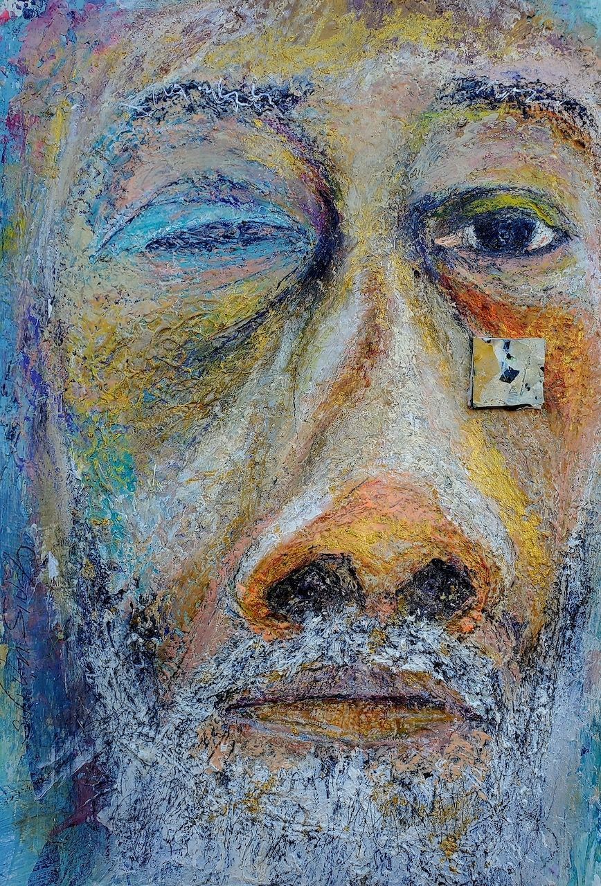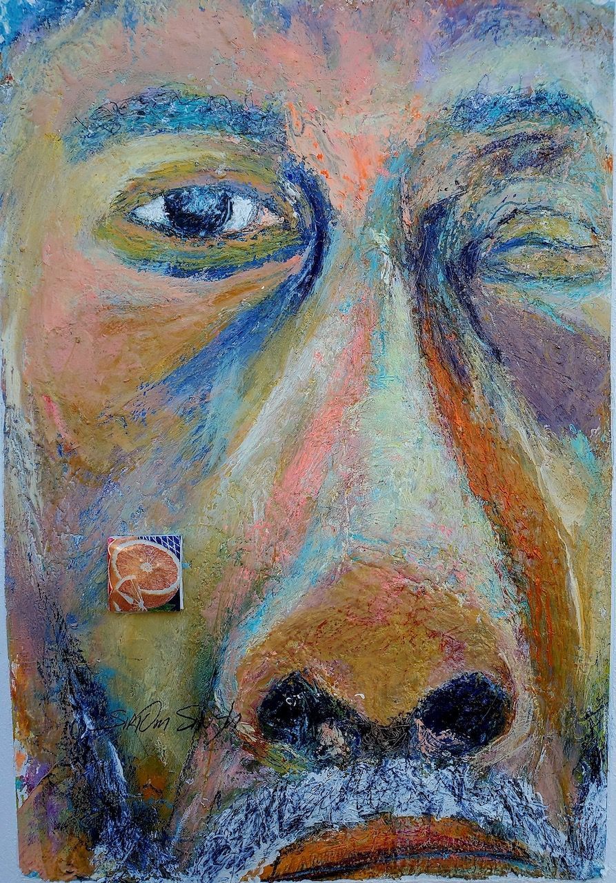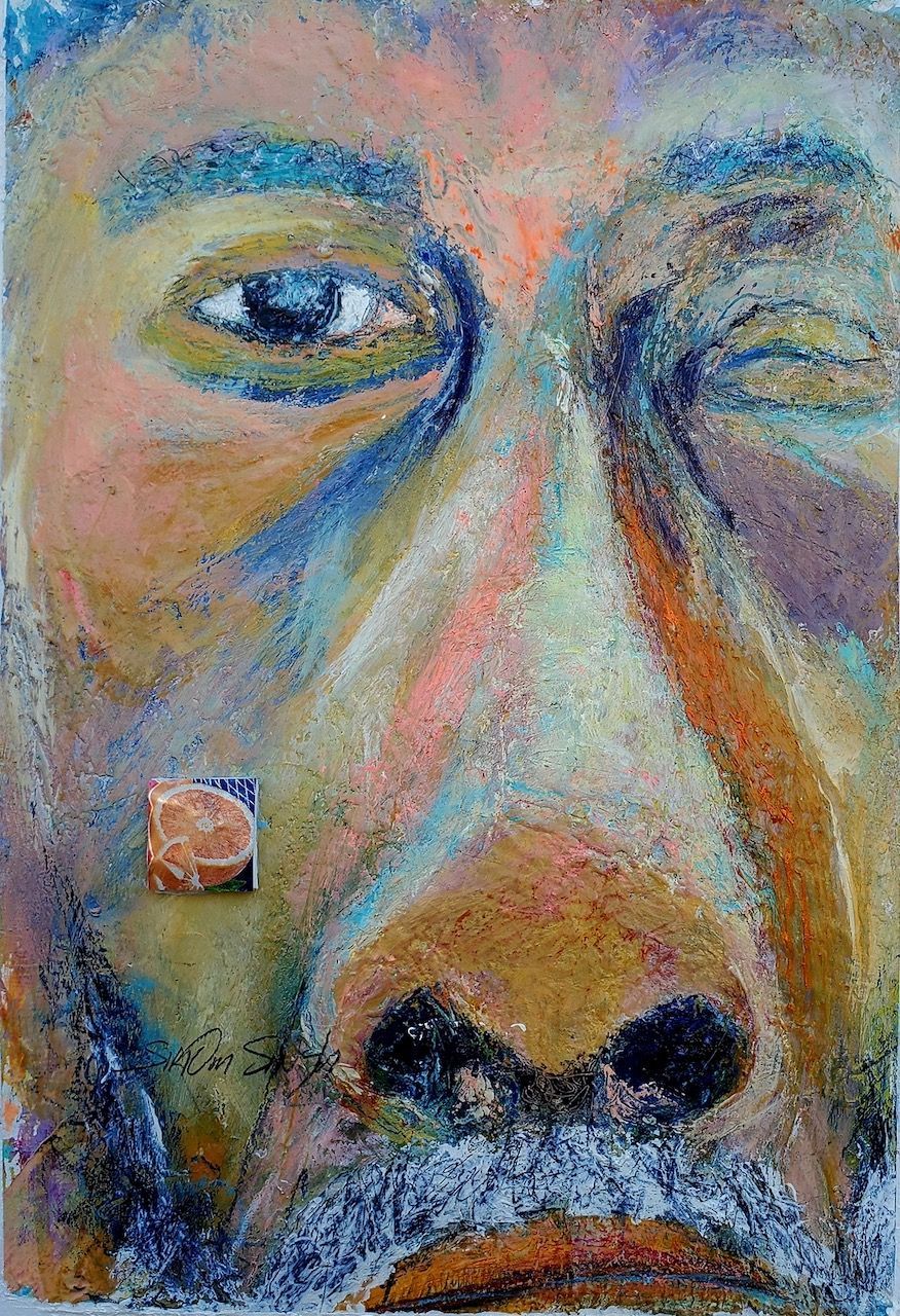 Ahimsa 16x20 acrylic and collage on canvas paper
